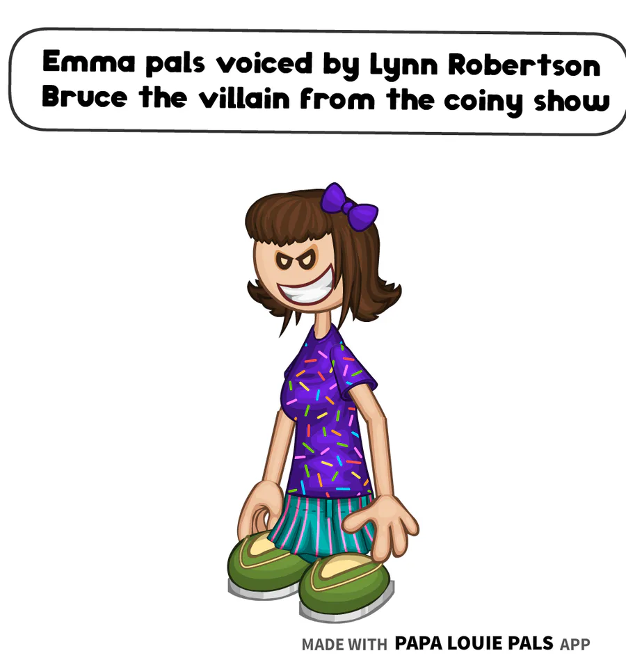 Emma pals is voiced by Lynn Robertson Bruce the villain from the coiny show