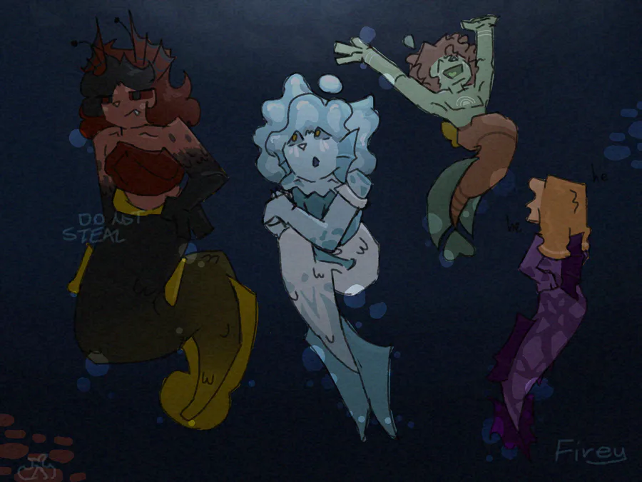 The cast of my comic (which you should totally check out, link in my bio) if they were mermaids