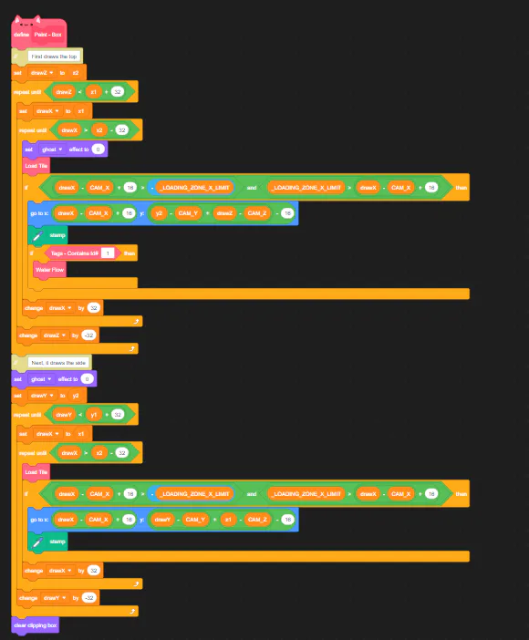 This is the code that draws the boxy looking geometry, new one has a bit more math but I'll take more horizontal code than vertical if you know what I mean