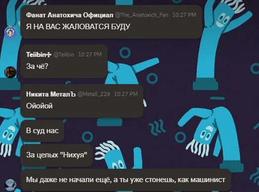 Угрозы смертью, неадекватное поведение, оскарбления, защита тех, кто проебался и уёбичный характер