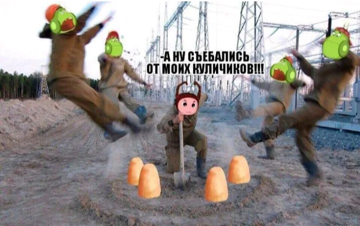 А ну съебались от моих куличиков! Мем не мой создатеь мема: https://gamejolt.com/@Mr_memes