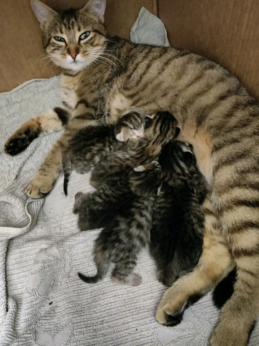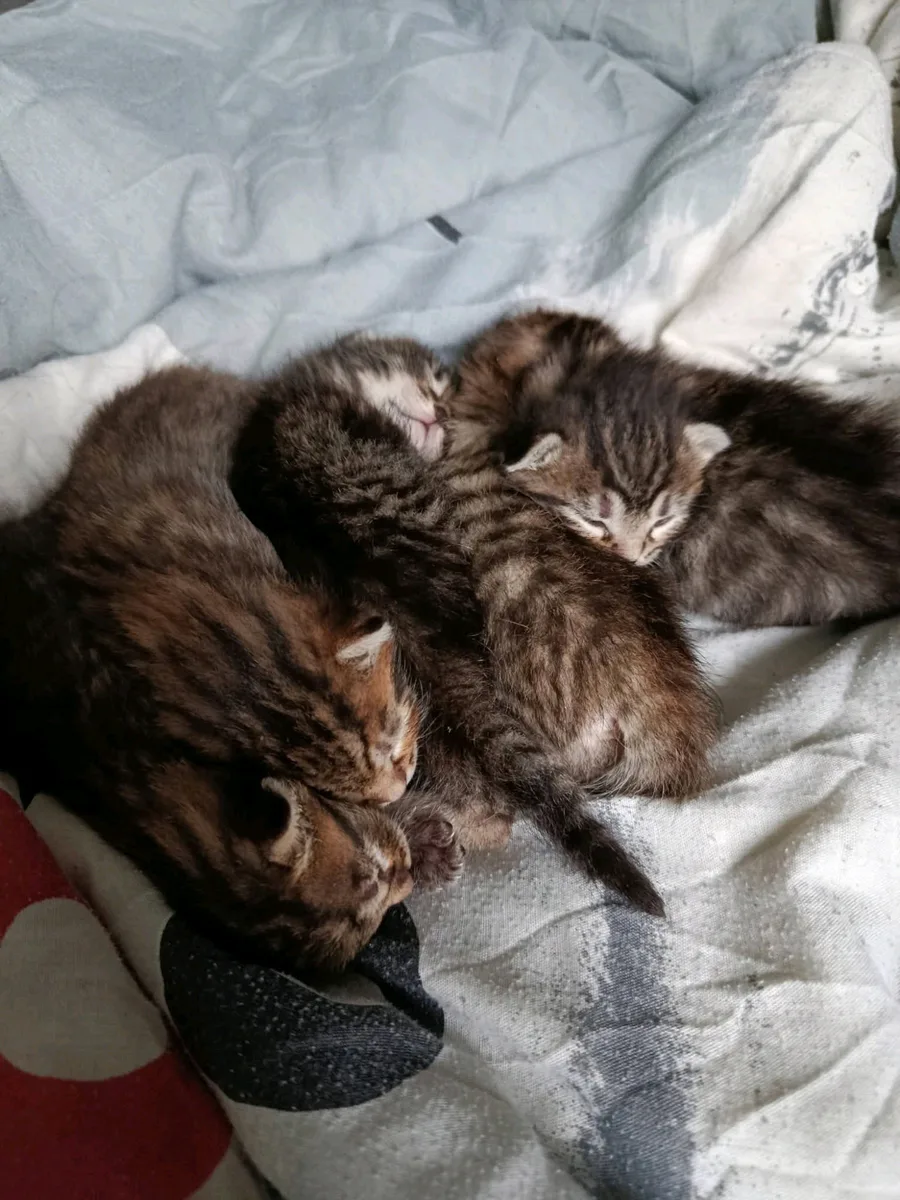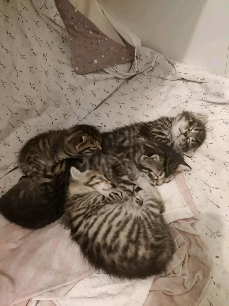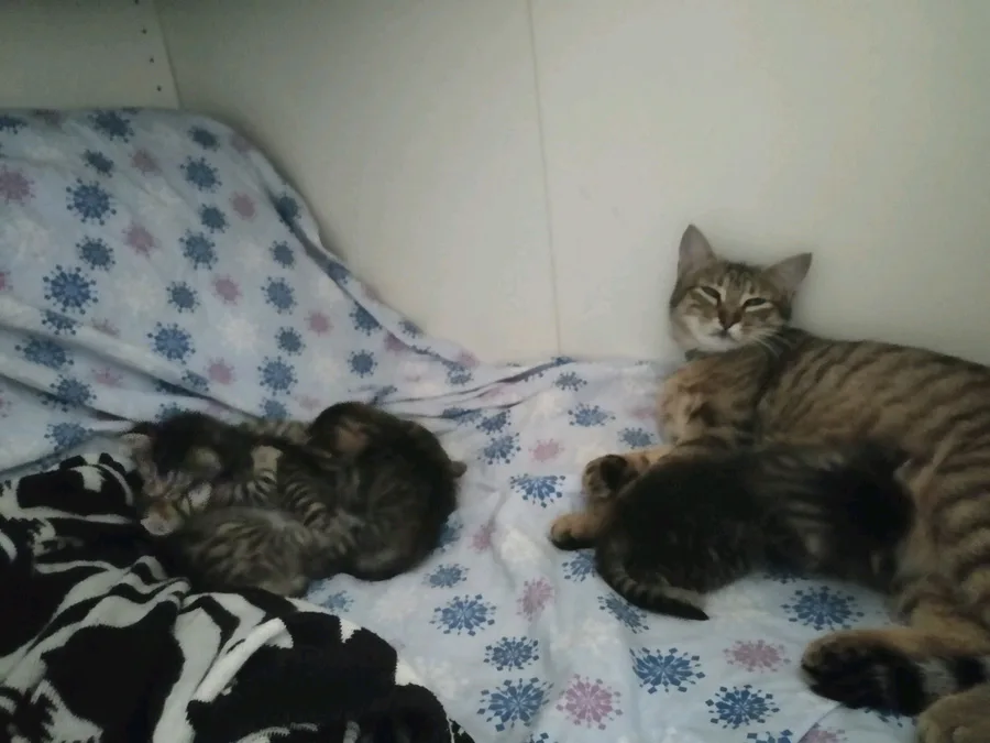 The miracle of life , my cat just gave birth to 5 cute littles kittens