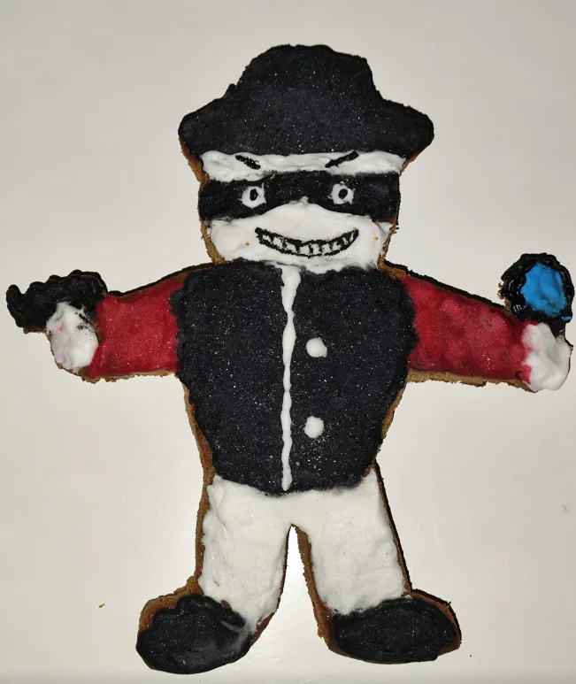 Und seht mal, was mir das im neuen Jahr gebracht hat! Das erste Bild zeigt eine Tasse, auf der Abby Paper vor dem Drap-Gerät aus meinem Spiel „Crazy Detective and Super Abby“ flieht. Abbys Haut sollte aber weiß und nicht beige sein, wenn das der Anfang ist. Und Drap sieht nur wie eine Playmobil-Figur aus, nicht wie eine normale Figur. Das zweite Bild zeigt dasselbe in den Neujahrsversionen, nur dass die Tasse auf der anderen Seite ist. Das dritte Bild zeigt einen Lebkuchenmann, hier nur Drap. Ich hatte gehofft, dass sie mir auch ein Plüschtier wie den Lebkuchenmann und die Tasse, die ich mit einem neuronalen Netzwerk erstellt habe, bringen würden. Schade nur, dass es die im Laden zu kaufen gibt! Wenn das kein Scherz ist!