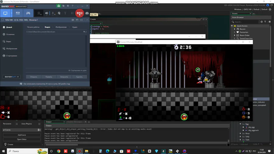 Решил поменять хотя бы спрайты айдл и получения урона, только при айдл спрайте Экзетиор летает.