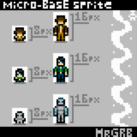 Showcase of my base sprites which are VERY small, literally as one gameboy tile. Maybe i'll create something with this design later...