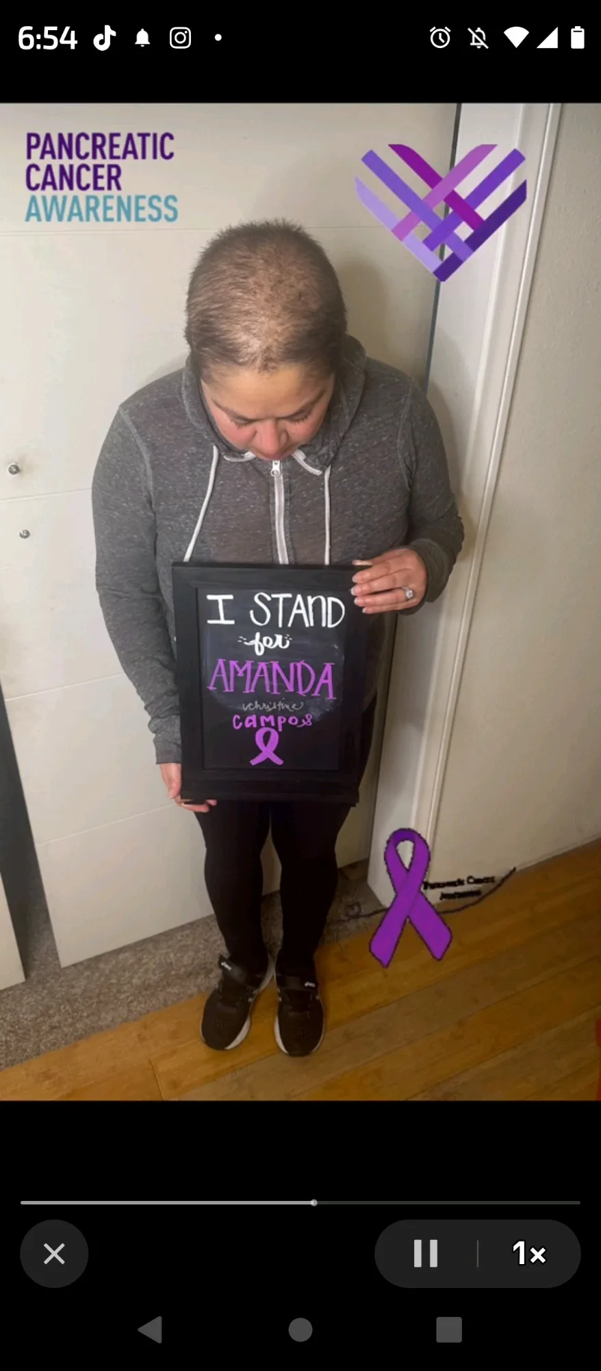 A friend I met who fought ovarian cancer. She made a sign in honor of my battle with pancreatic cancer 💜 November is pancreatic cancer awareness month