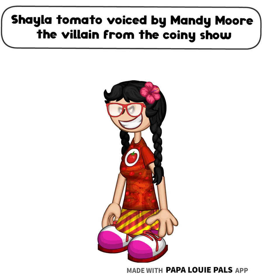 Shayla tomato is voiced by Mandy Moore the villain from the coiny show