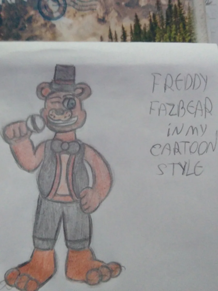 I made some drawings of the entire Freddy gang, except for Golden Freddy, and just added Sparky to The grupo in my Cartoon style.