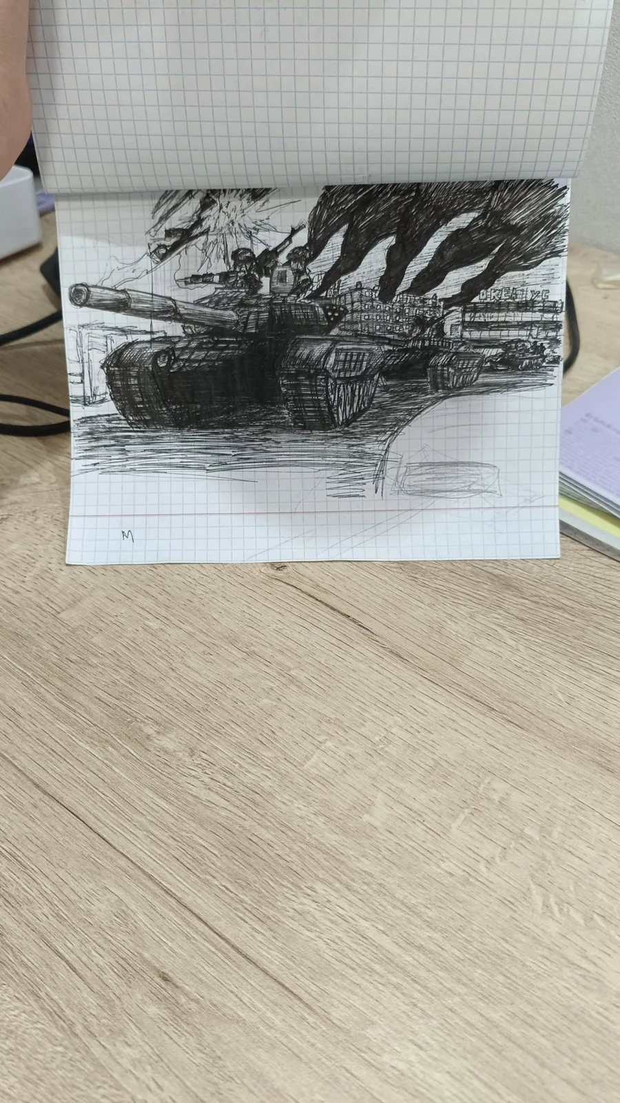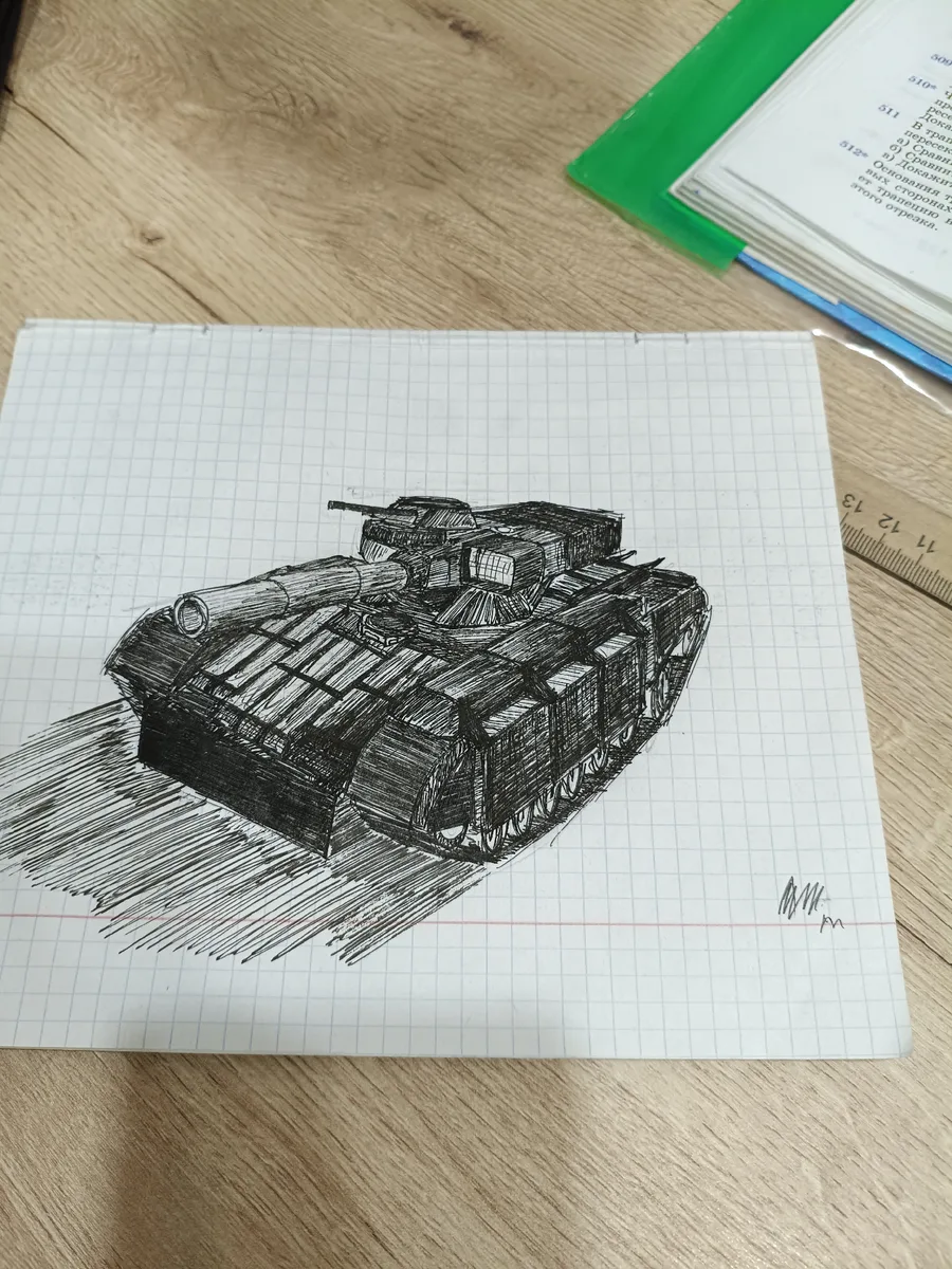 The art in progress. Communists: two tanks t-72b and t-34-85 on road in front of Uralgrad. Mi-24 been destroyed by "igla".