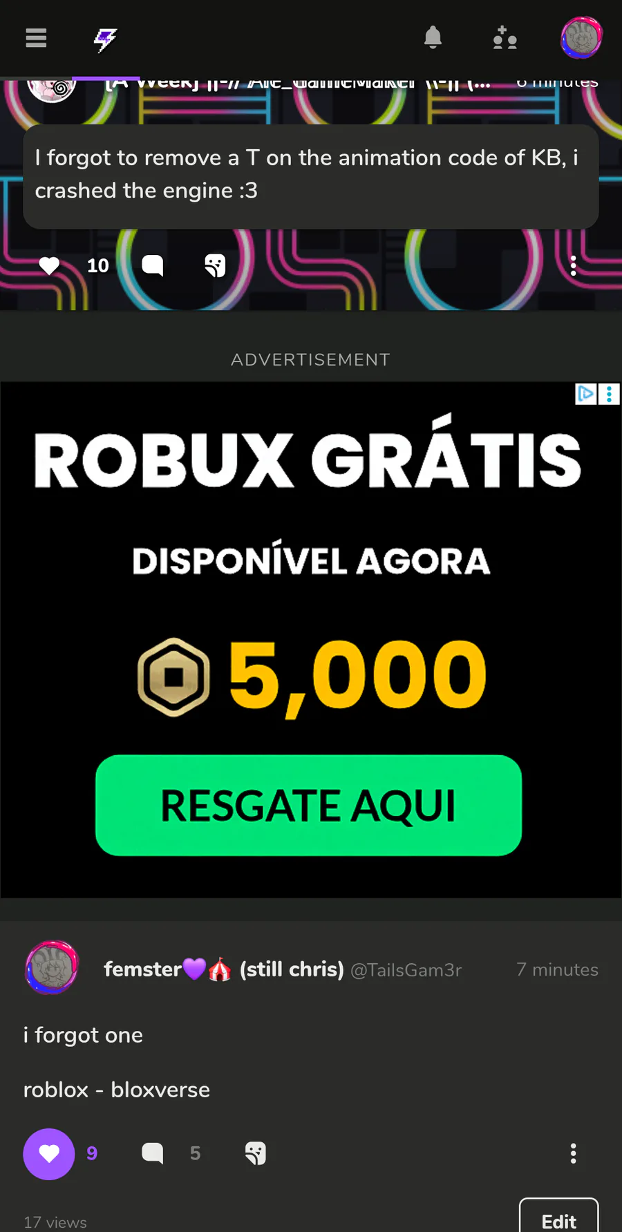 a fake free robux ad on gj