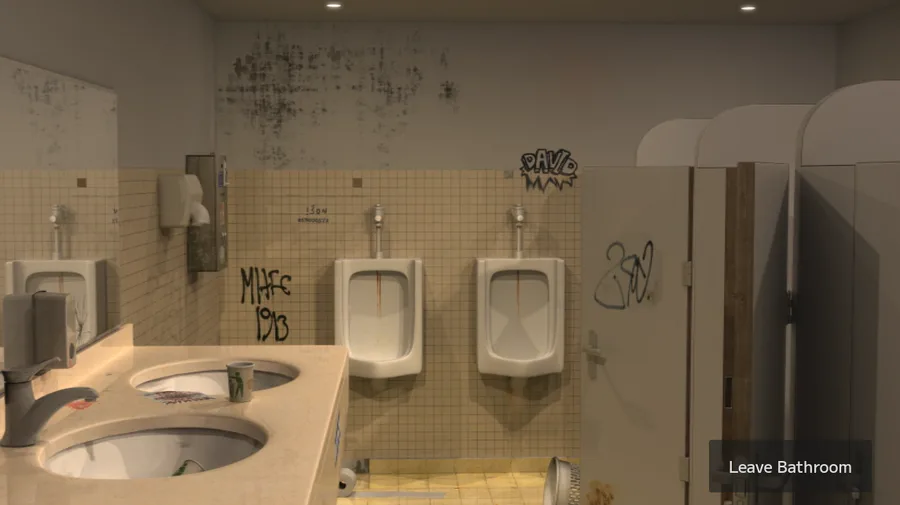 Made the bathroom now work, so when i click the bathroom button on the map it takes me to the bathroom scene!