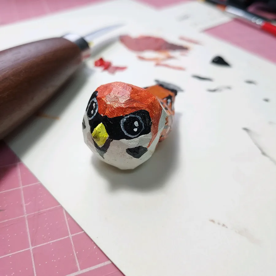 I'm slowly learning how to whittle and here is a project I completed just today! A Eurasian tree sparrow. Whittled and painted with love and gifted to a couple of friends to put in their Christmas tree.