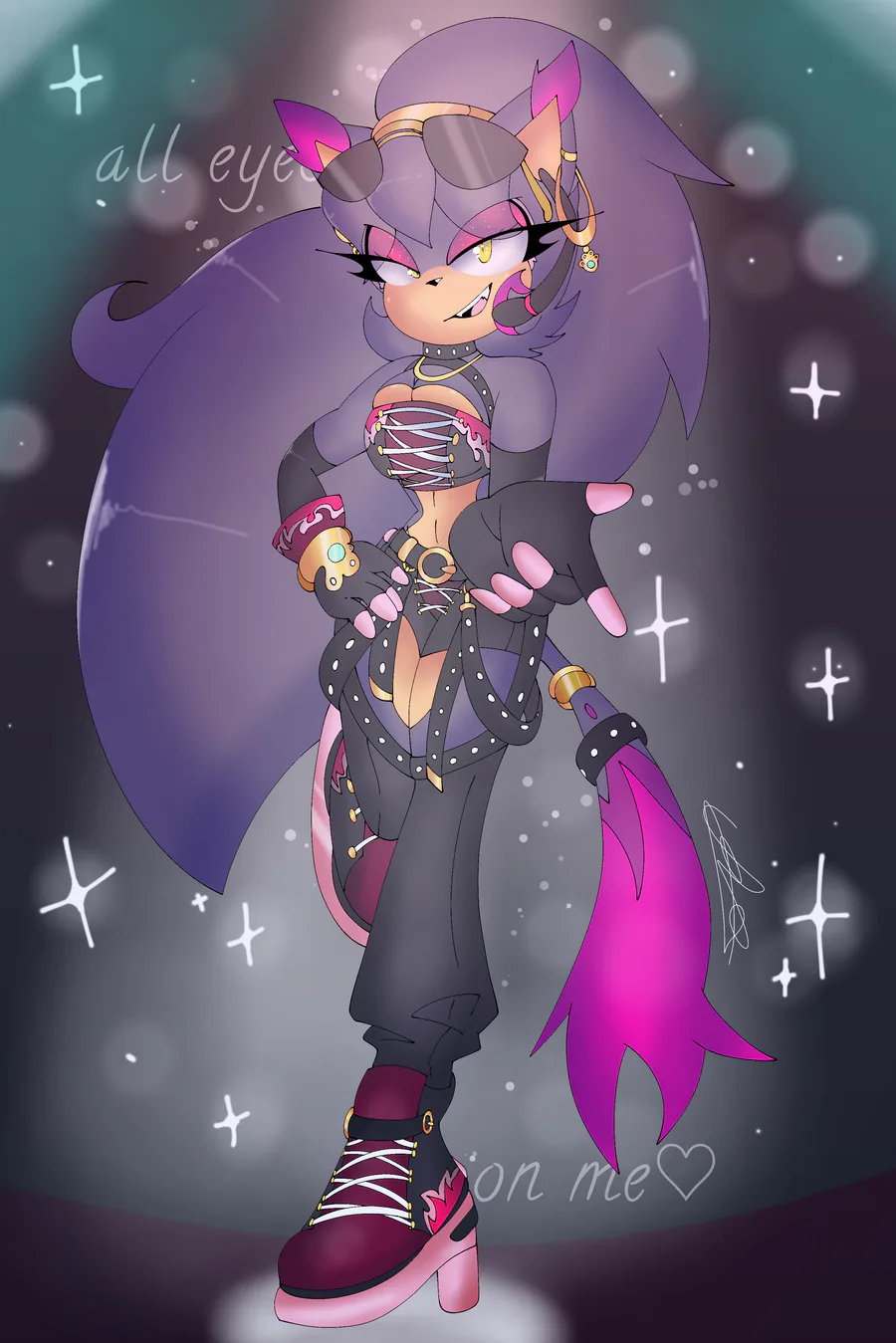 Backstory : neko was a creation by Doctor eggman, to defeat sonic the hedgehog and his friends, he wanted to create something similar as his grandfather gerald did so he created neko, neko didn't know her purpose when she was born and she thought that taking over the world isn't the right thing to do, and that it's her life and nobody can control her, so she decided to just become an anti-hero, she sometimes fights evil too but mostly does what's best for her, she then left eggman's base and decided to move on by herself, she couldn't control her electric powers at first but after practicing, she's now ready for anything and won't let anyone stands against her.