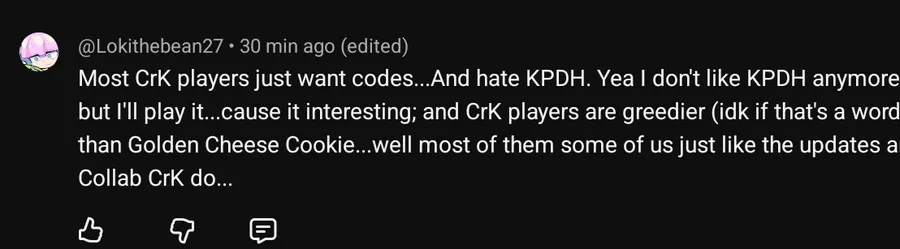 My comment about CrK players being greedier than Golden Cheese Cookie