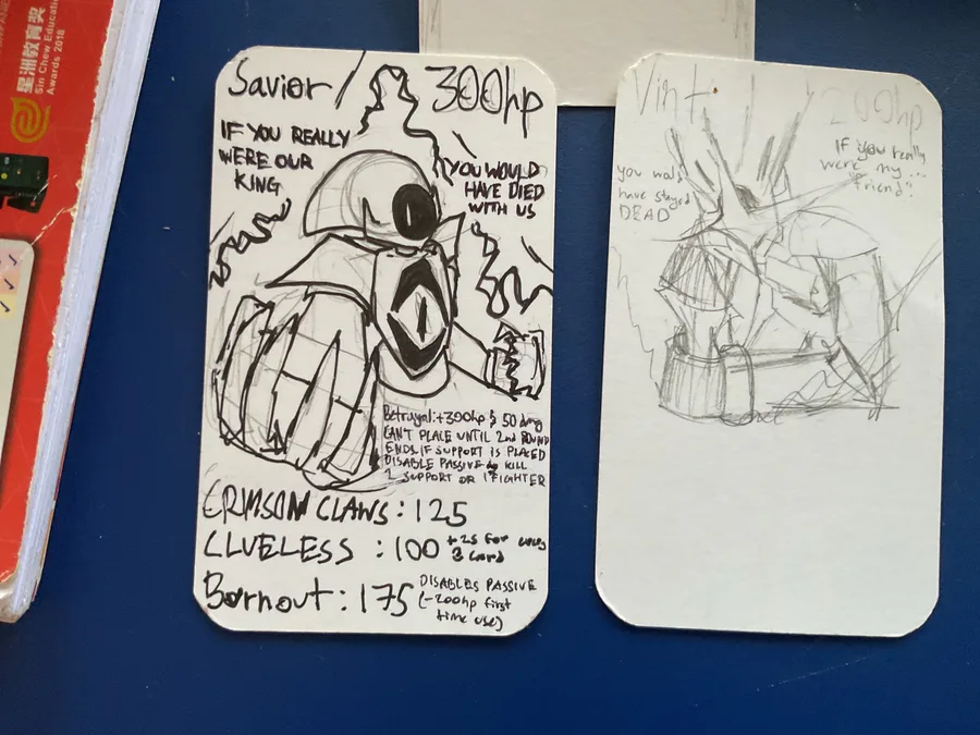 Old pics of me working on my card game (last time I counted there were like 200 ish cards holy๐ญ๐ญ๐ญ๐ญ)