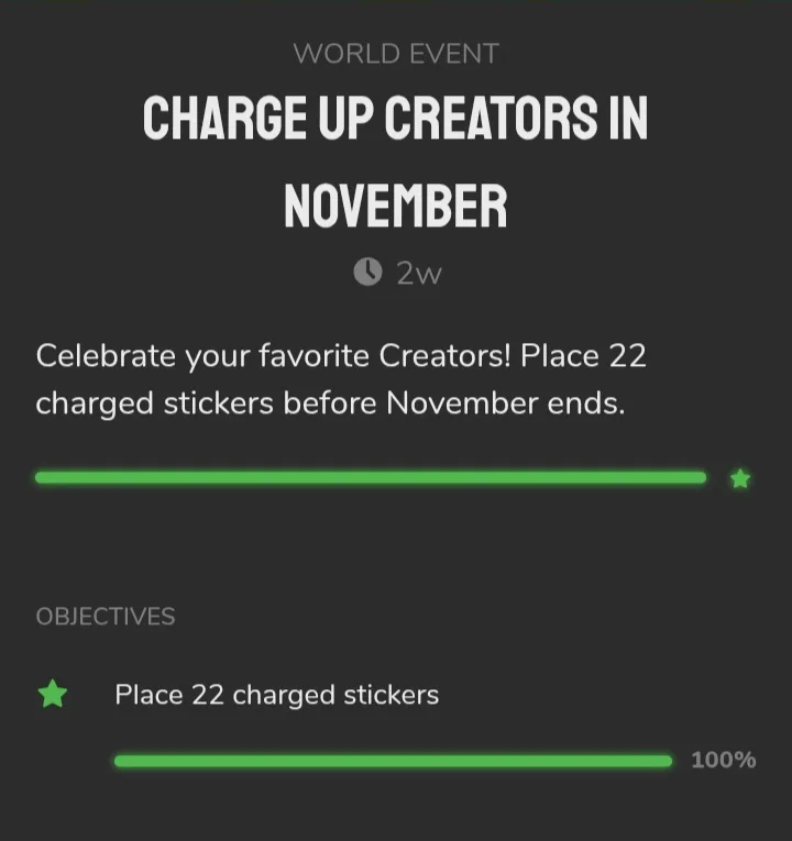Congratulation! Everyone we finally complete Charge Up Creators In November Quest and get Supported Creators In November 2025 Trophy! you should be feel proud for your achievement everyone :)