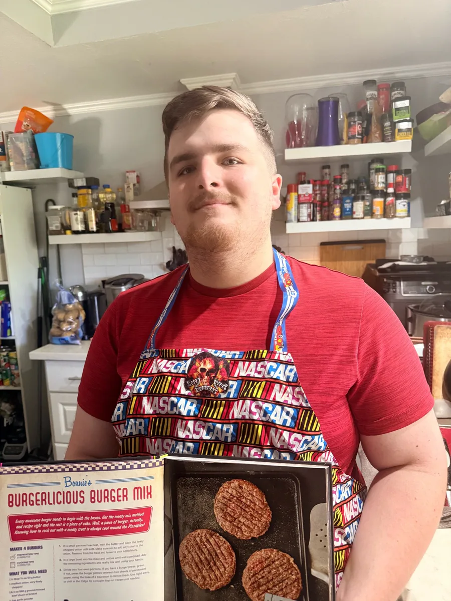 Here’s a picture of me wearing an apron (that my grandma made a long time ago) making Meatball subs from the Fnaf Cookbook for dinner today with my mom