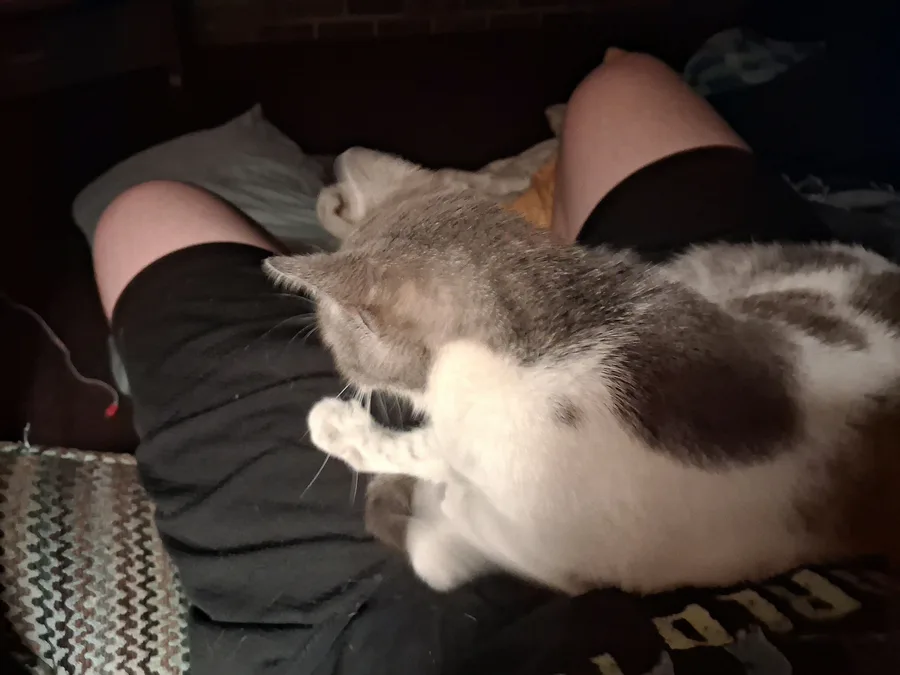 She is completely healthy, the only thing is, we think she might be partially cross eyed. Besides that, she's okay. She's purring and as of now, sleeping on my lap. She's a sweetheart and I love her so damn much already! I'm gonna take dozens of pictures of her, and share them with you!