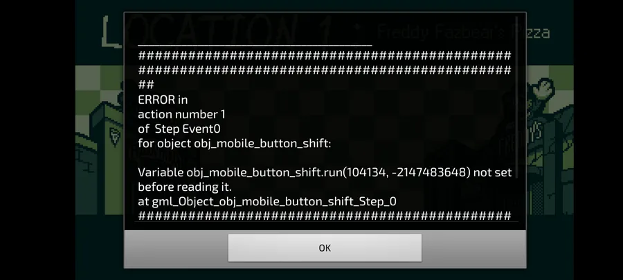Alguém sabe como eu resolvo isso eu passei da noite um do five nights at frickbears 3 a versão mobile do @The_Max_Fazbear