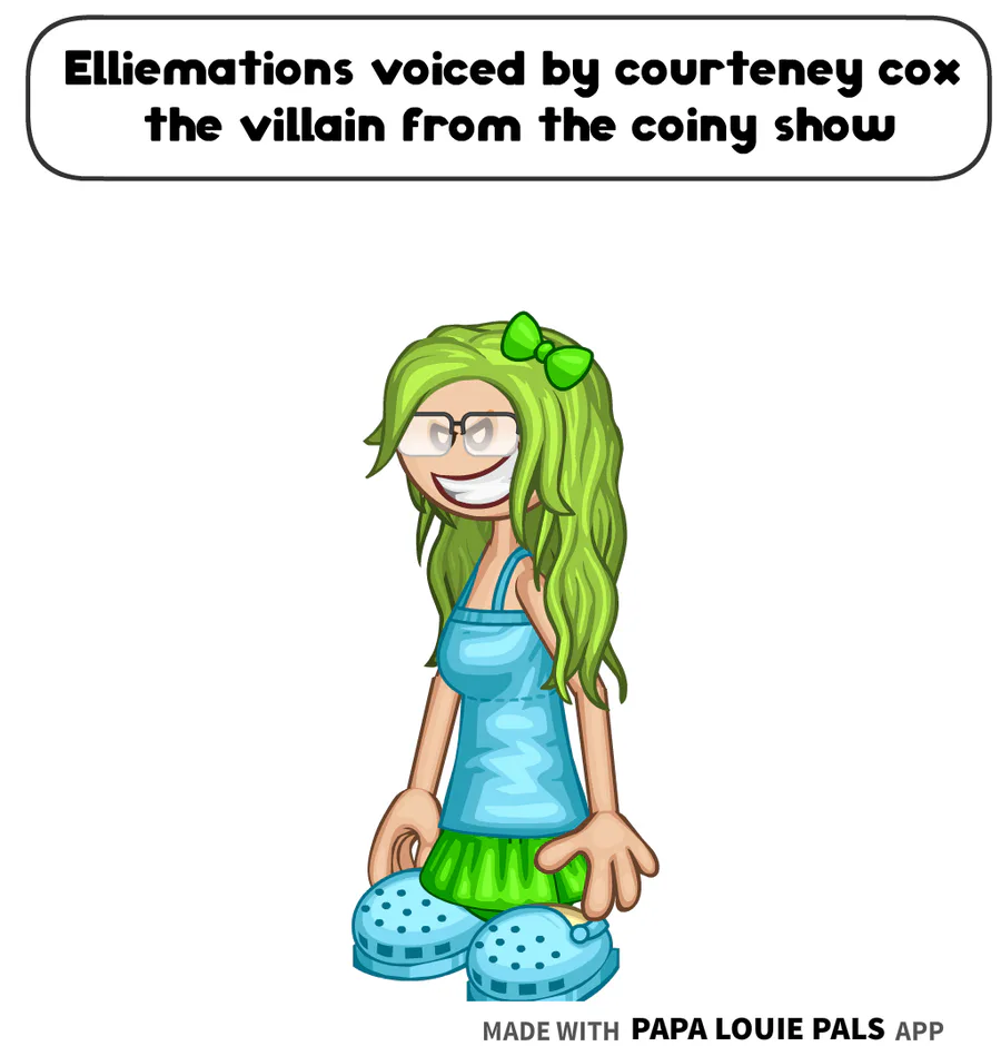 Elliemations is voiced by Courteney cox the villain from the coiny show