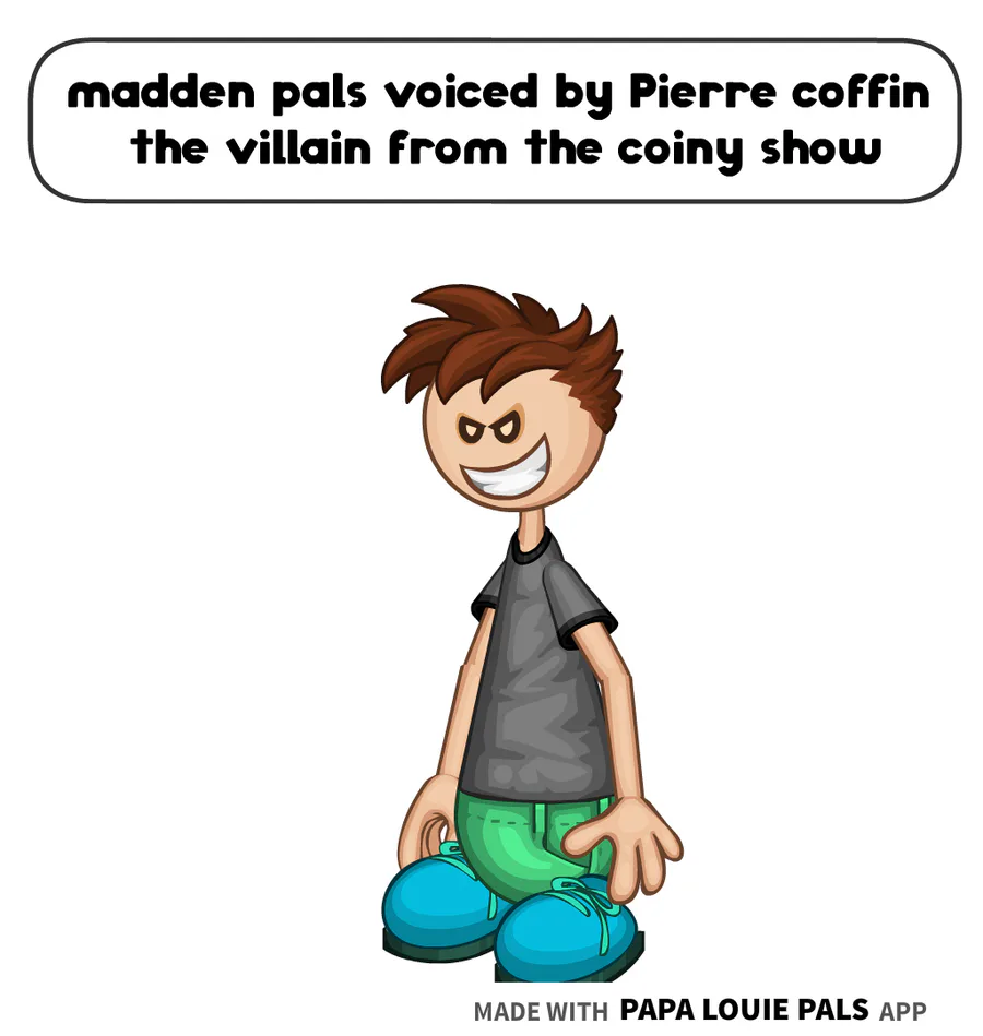 madden pals is voiced by Pierre coffin the villain from the coiny show