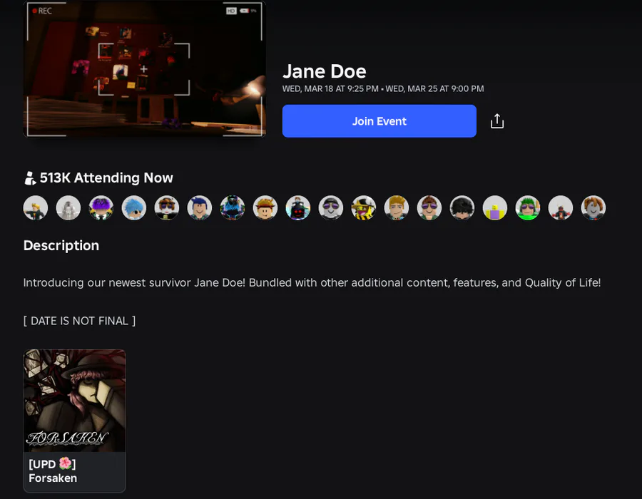 I'm sure many of you aren't going to like this, but, I'm planning on covering the newest Forsaken update. For those who don't know, at the beginning of the year, I said I wouldn't cover the Forsaken Christmas update because the game was too controversial, and, well, I didn't complete it, but recently (or today, depending on when this comes out), they released a new update for March 18th (aka John Doe Day) where they released a new survivor, Jane Doe. With John Doe and Noob being my all-time favorite killer and survivor duo ever put in an asym, I wanna cover the game one last time, for old times sake. I don't know what the video will be exactly, but it'll be a mix of all my past Forsaken videos. I'm hoping to end my time with this game with a bang!