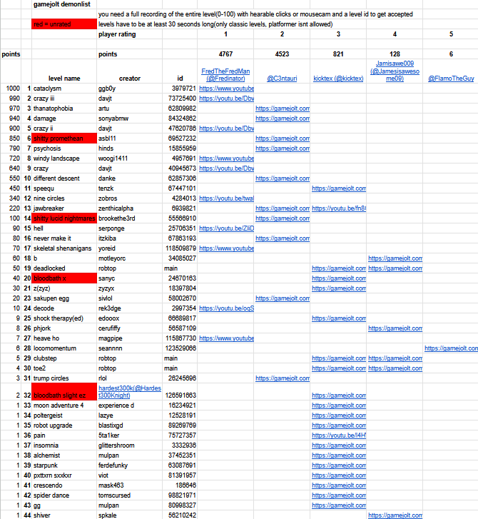 gamejolt demonlist update: added a bunch of people and levels, testing alternative point values(oh god its so cluttered now)