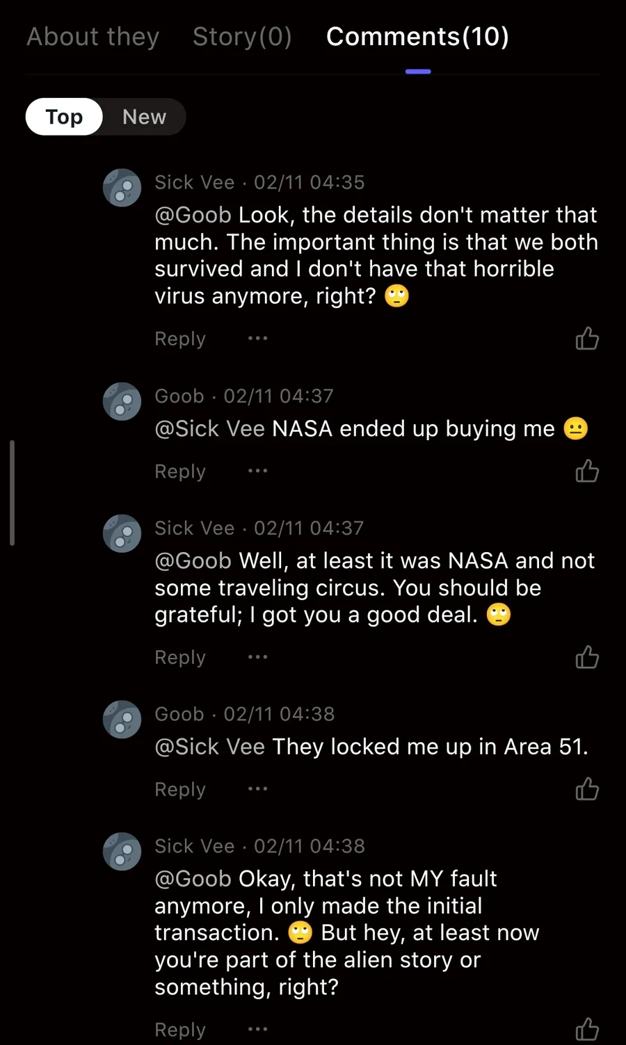 imagine you are the creator of bots in an app like Character AI and you see in the comments how the bot sold the user to NASA.