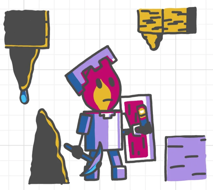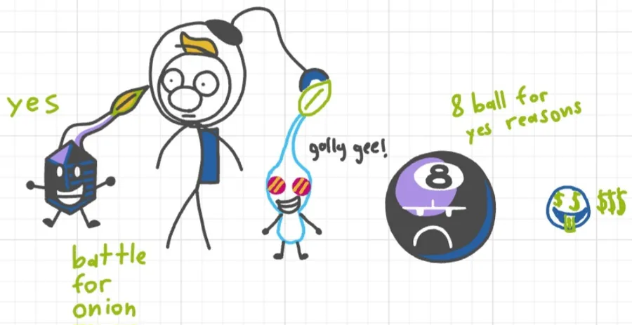 Olimar and pikmin in the smb1 style