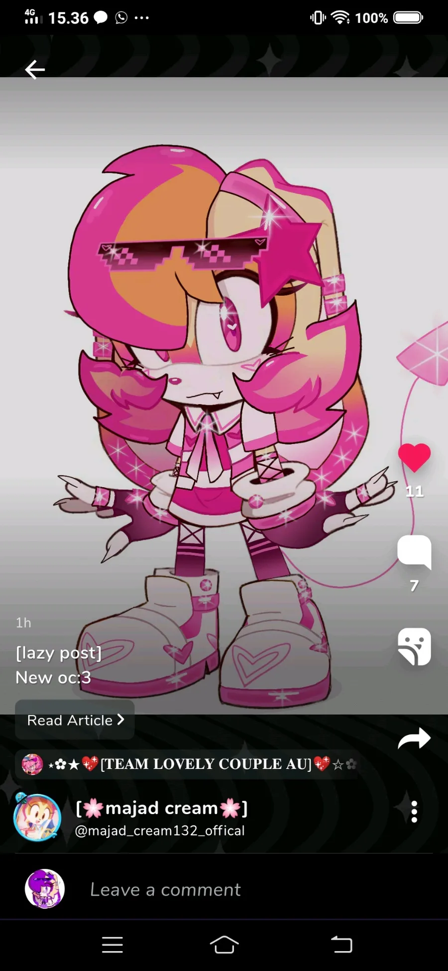 Aww that's cute oc but looking same the oc and so.. Have different color. I'm a purple color and your a pink TwT... @lovepink_creamthefunny ![]()