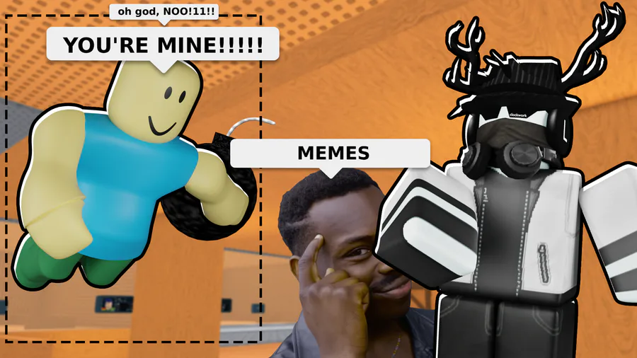 Im back once again! (after not uploading, skill issue to me) Rate my first Roblox thumbnail (and did this myself on shading, poses and etc)
