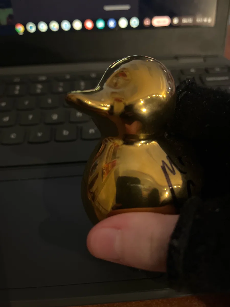 WAS THE ONLY ONE IN MY CLASS WHO GOT A 100 ON THE EOC SO I GOT A SIGNED GOLDEN DUCK