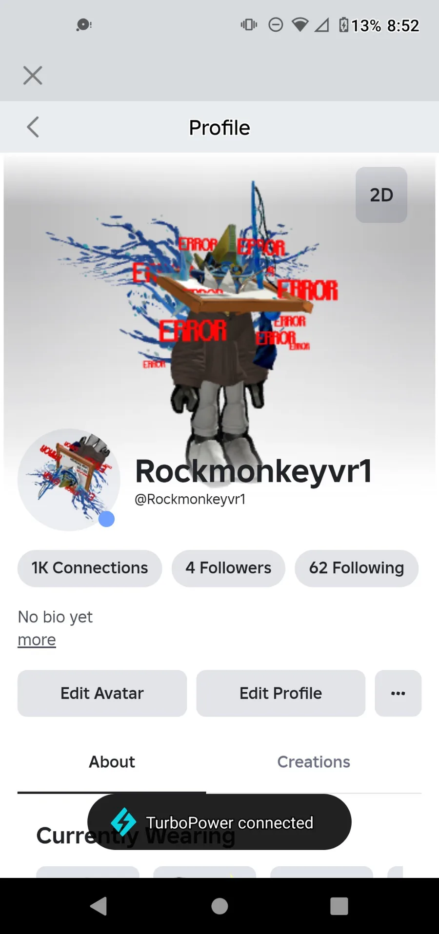 (I'm still working on it lore) The lore: one day while it was charging it's cord broke (is that how you spell cord?) and now it's glitchy and it has red error things around it