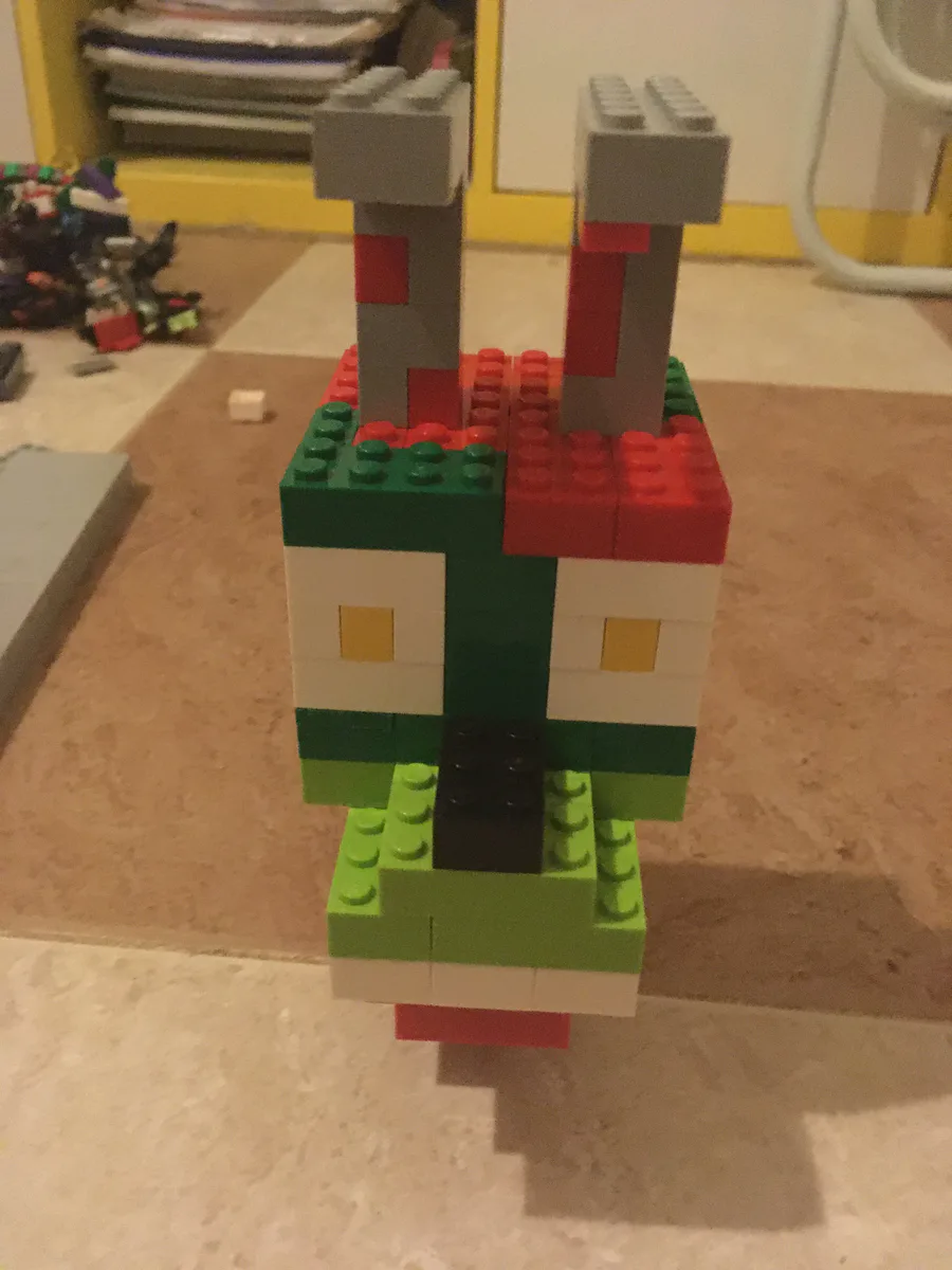 My new weird Freddle & Burntrap Lego head (each one took me an hour)