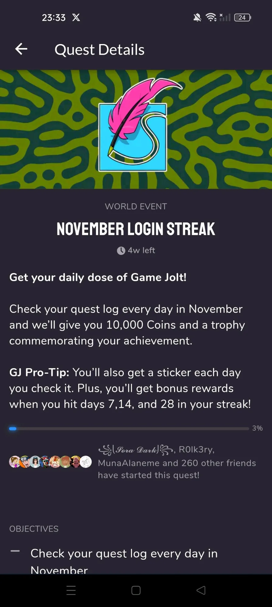 November Login Streak: Day (01/30)