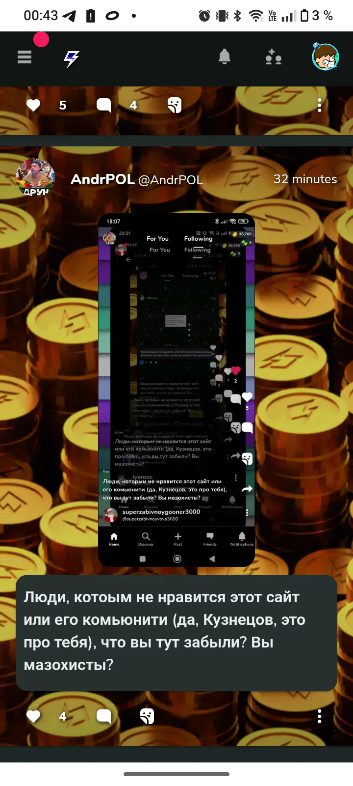 Люди, котоым не нравится этот сайт или его комьюнити(да, Кузнецов это про тебя,)что вы тут забыли? Вы мазохисты?
