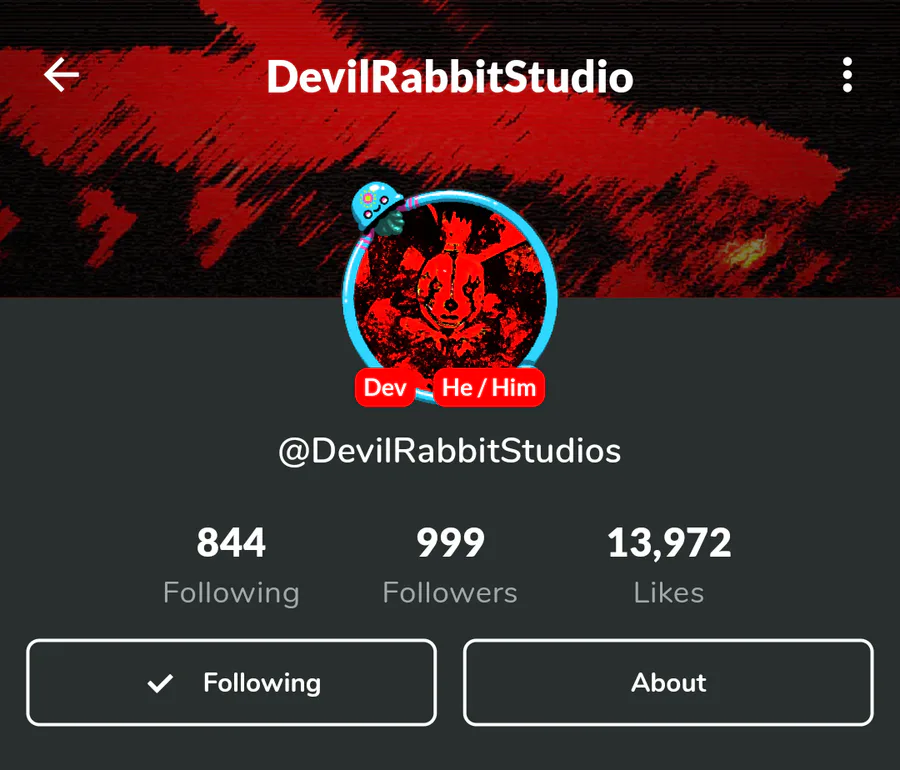 Come On People, Get this Man To 1K Followers, @DevilRabbitStudios .