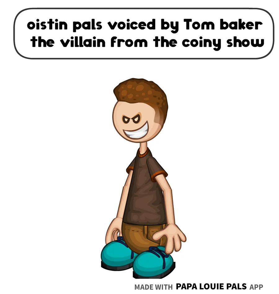 oistin pals is voiced by Tom baker the villain from the coiny show