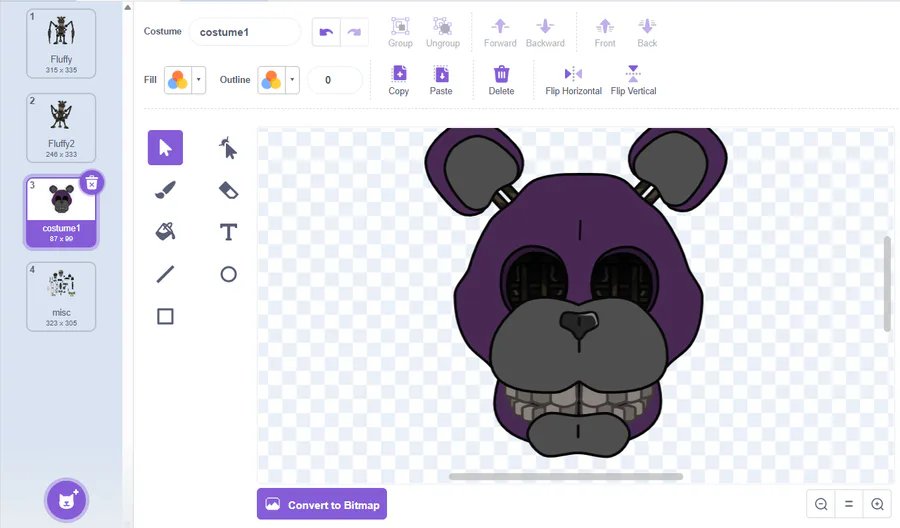 A long time ago, I had the idea to make a FNaF clone using scratch. Within 2 or 3 days, I created 'One Night at Fluffy's'.