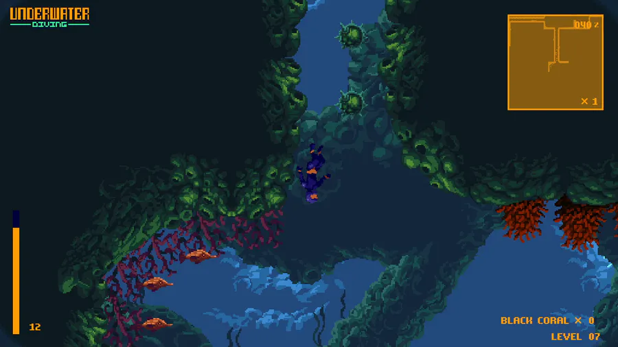 You are an underwater diver surrounded by aggressive fish and minefields