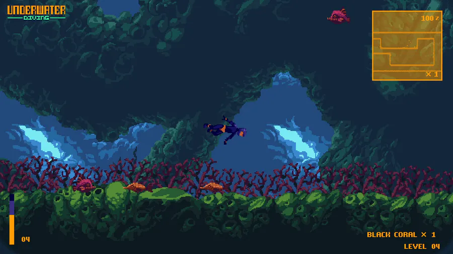 You are an underwater diver surrounded by aggressive fish and minefields