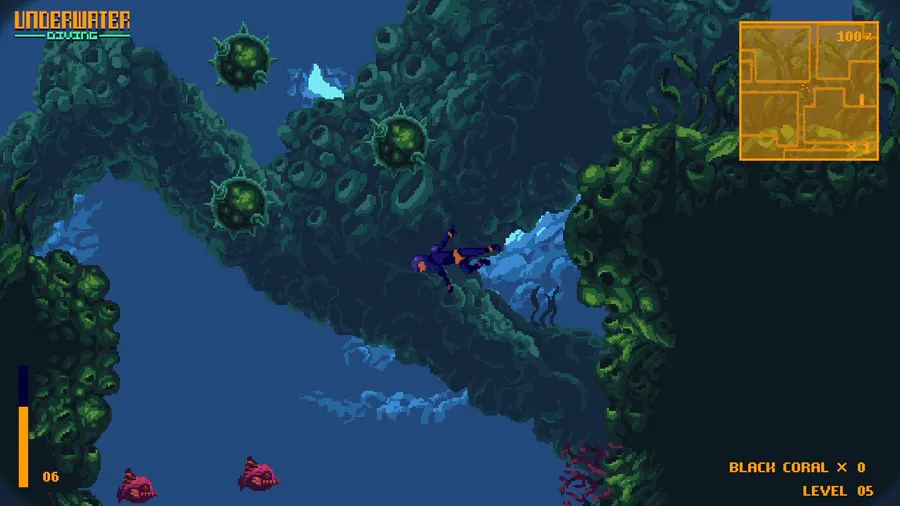 You are an underwater diver surrounded by aggressive fish and minefields