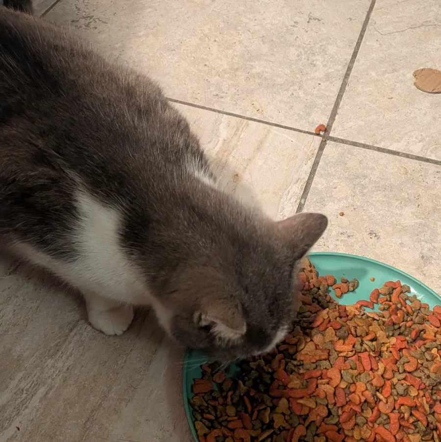 Weekend night hang out with the stray kitties on the porch. That's Rocky (Rockman), Junior, and Rocky again.