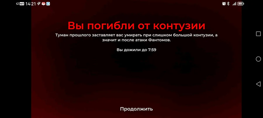 Ура. (Если кто не понял в этом испытании, если фантом хоть раз на тебя нападёт, то ты сдохнешь, и если слишком большая контузия будет, то есть слишком много будет светлого экрана проще говоря)