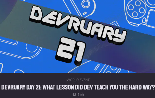 #Devruary Day 21: What Lesson Did Dev Teach You The Hard Way?