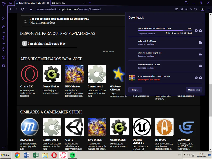 começei a baixar o criador de jogo