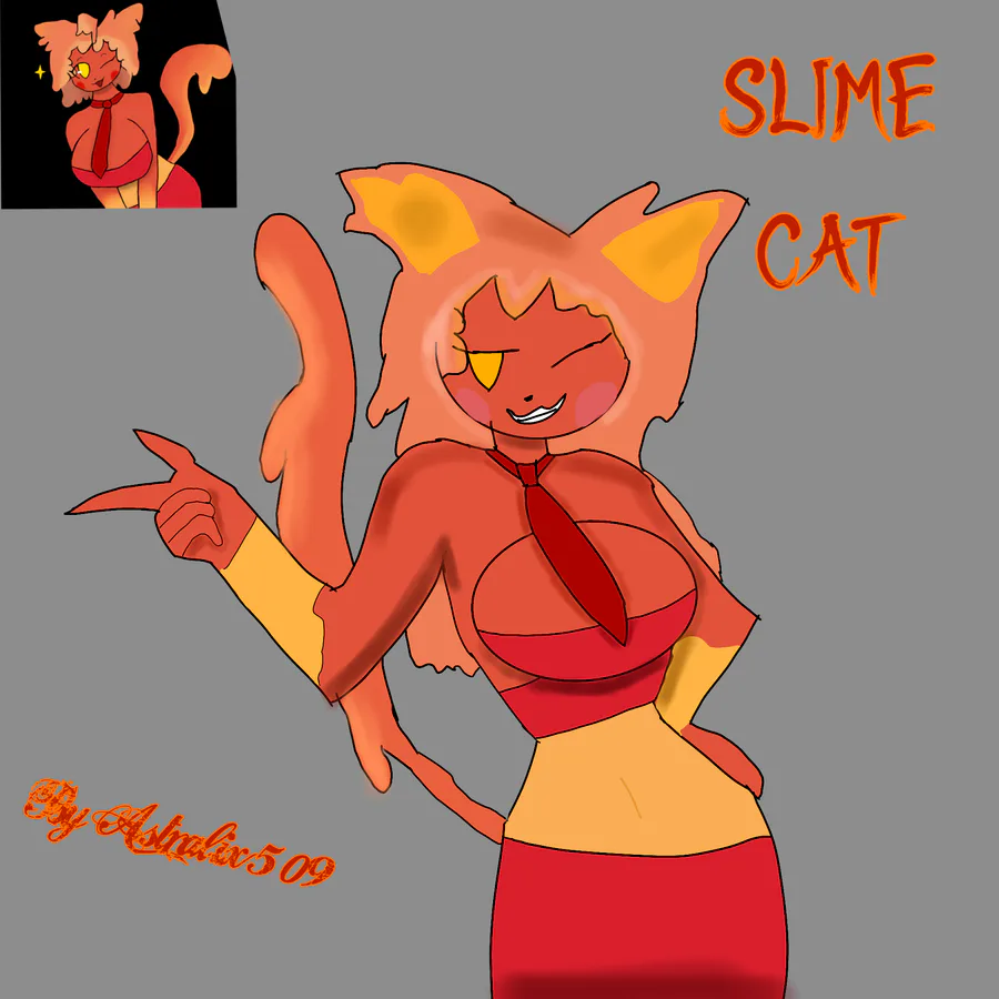 I'm tired today... So I decided to draw a Slime Cat with long hair instead of short (OC by @slime18