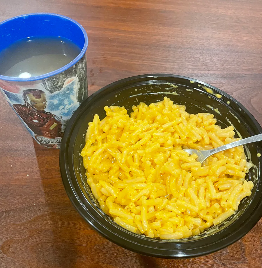 Having some mac and cheese and apple cider rn ^^