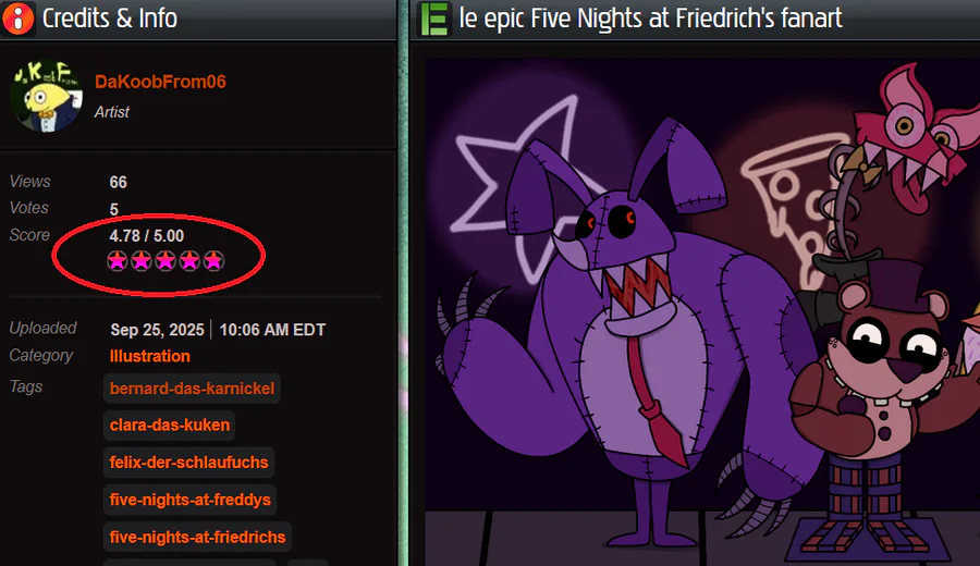 Currently in the middle of touching up my fanart piece of 'Five Nights at Friedrich's' & all I gotta say for it is: It's getting closer to completion, but holy shit Friedrich's colors are too "purple/red" for my liking.