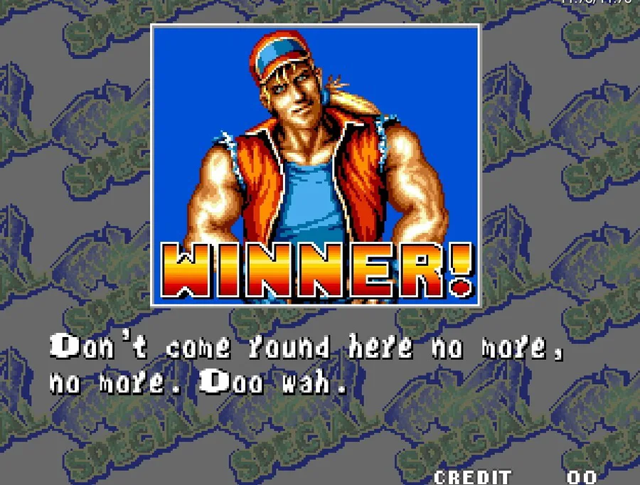 This is, without a doubt, Fatal Fury: Special's greatest addition. This dream match can be achieved by beating the game without losing any rounds, and its against the one and only Ryo Sakazaki, from Art of Fighting. This is one of, if not the very first guest character appearance in fighting games ever, and the idea was so cool that if it wasn't because of this, KOF would've never become true.